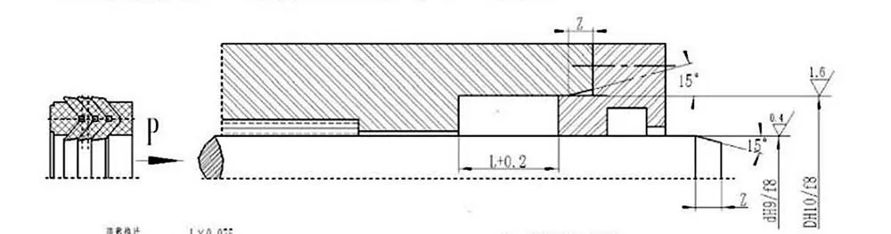 Le guarnizioni a forma di V possono essere regolate nella dimensione assiale regolando la guarnizione per ottenere tenuta e attrito ottimali. L'usura iniziale dopo un funzionamento a lungo termine può essere estesa regolando la dimensione assiale. Il design consigliato per la dimensione assiale regolabile della cavità della tenuta è 1,025 L, con un intervallo di regolazione di 7,5% L.